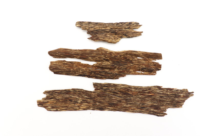 皮の様に薄く、しっかりと木質部分を削り落とし、沈香の部分のみを取り出しています。